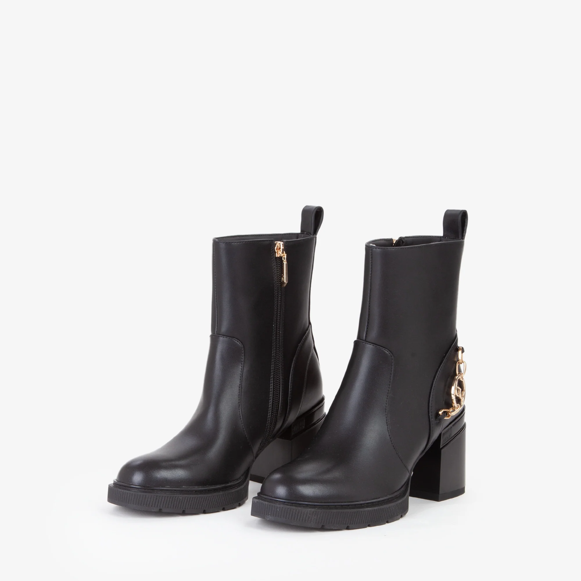 Tronchetto dal design contemporaneo con tomaia liscia e linee essenziali, impreziosito da un elegante dettaglio laterale: un logo metallico dorato con finitura lucida, incastonato in una staffa decorativa. Il fondo in gomma con battistrada dentellato garantisce una buona aderenza, mentre il tacco largo e squadrato assicura stabilità e comfort. Versatile e raffinato, è ideale per completare look da giorno o da sera, abbinato a jeans cropped o a un abito midi per uno stile urbano e distintivo.undefined