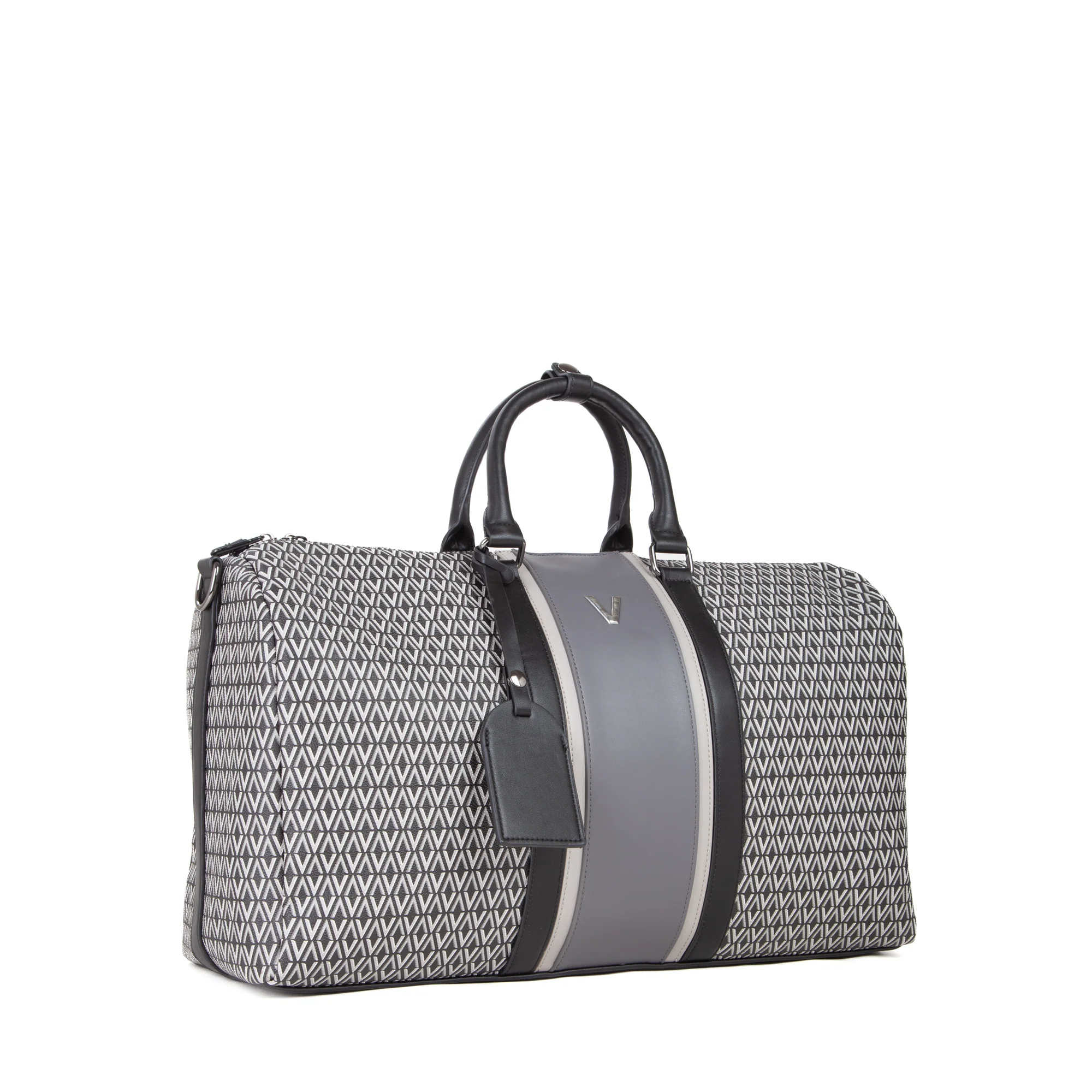 borsone logato con monograma su materiale principale e logo V centrale