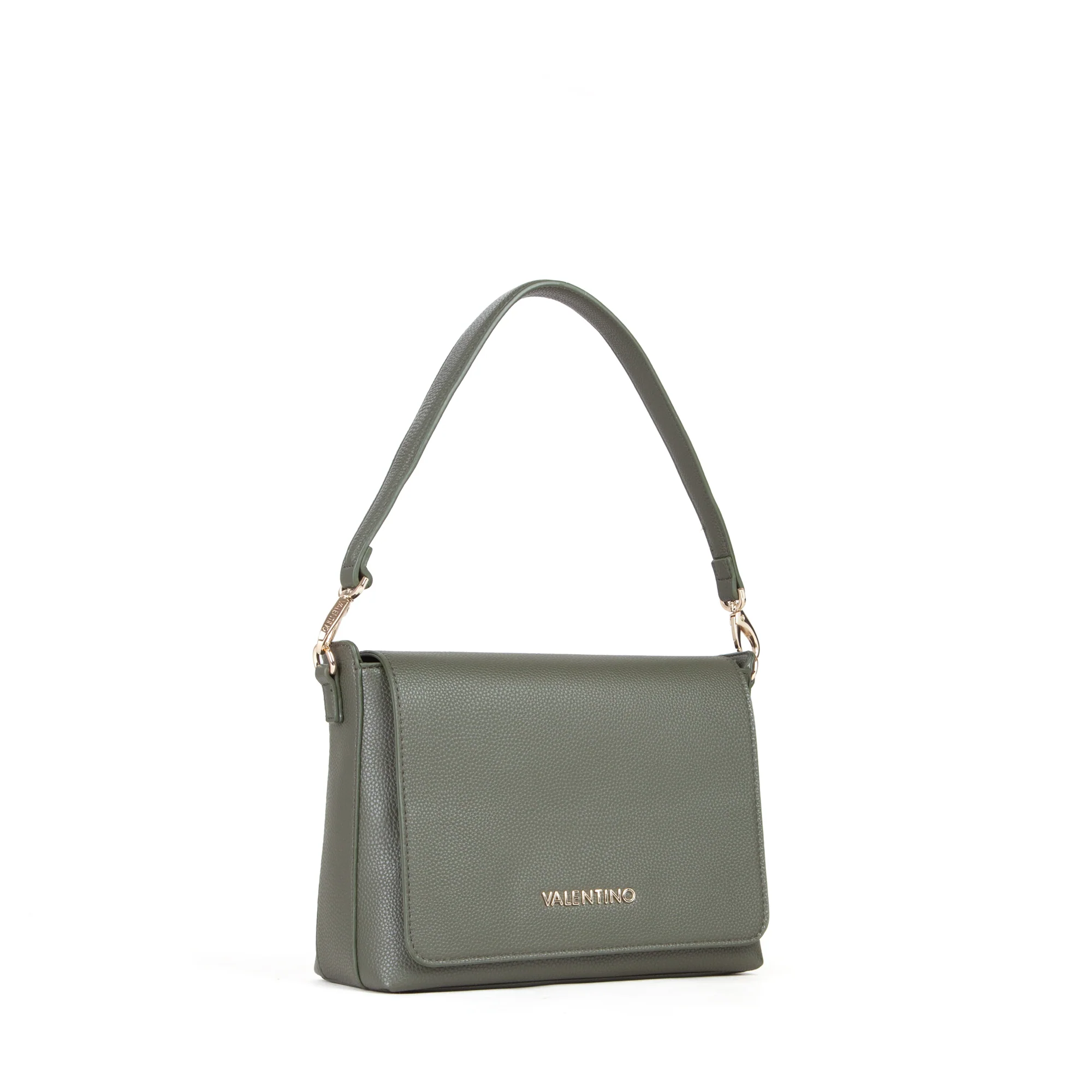 Pattina a spalla in grana, con logo in metallo e tracolla in nastro staccabile e regolabile.