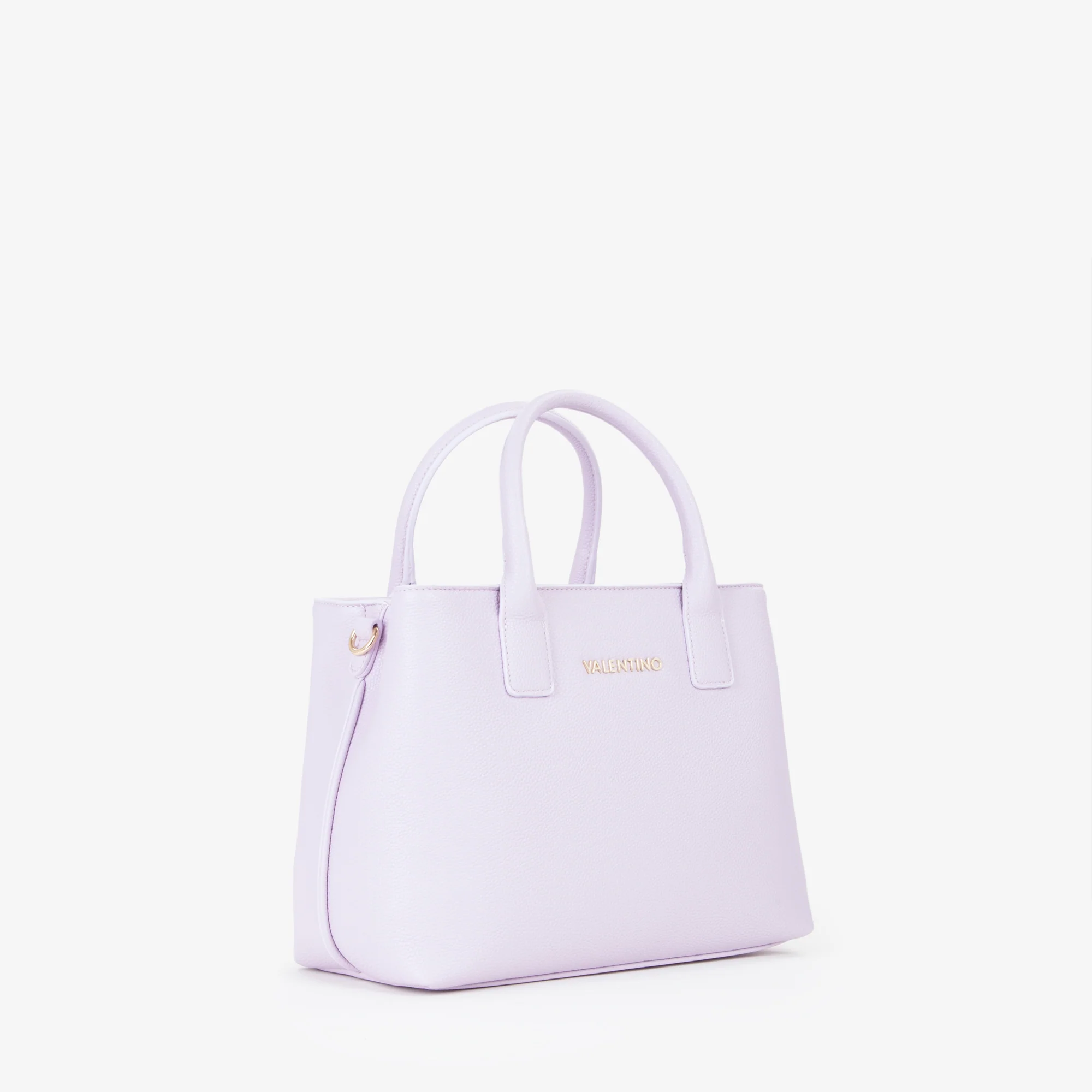 Shopping a mano, in grana, di medie dimensioni, con logo in metallo e tracolla in nastro staccabile e regolabile.